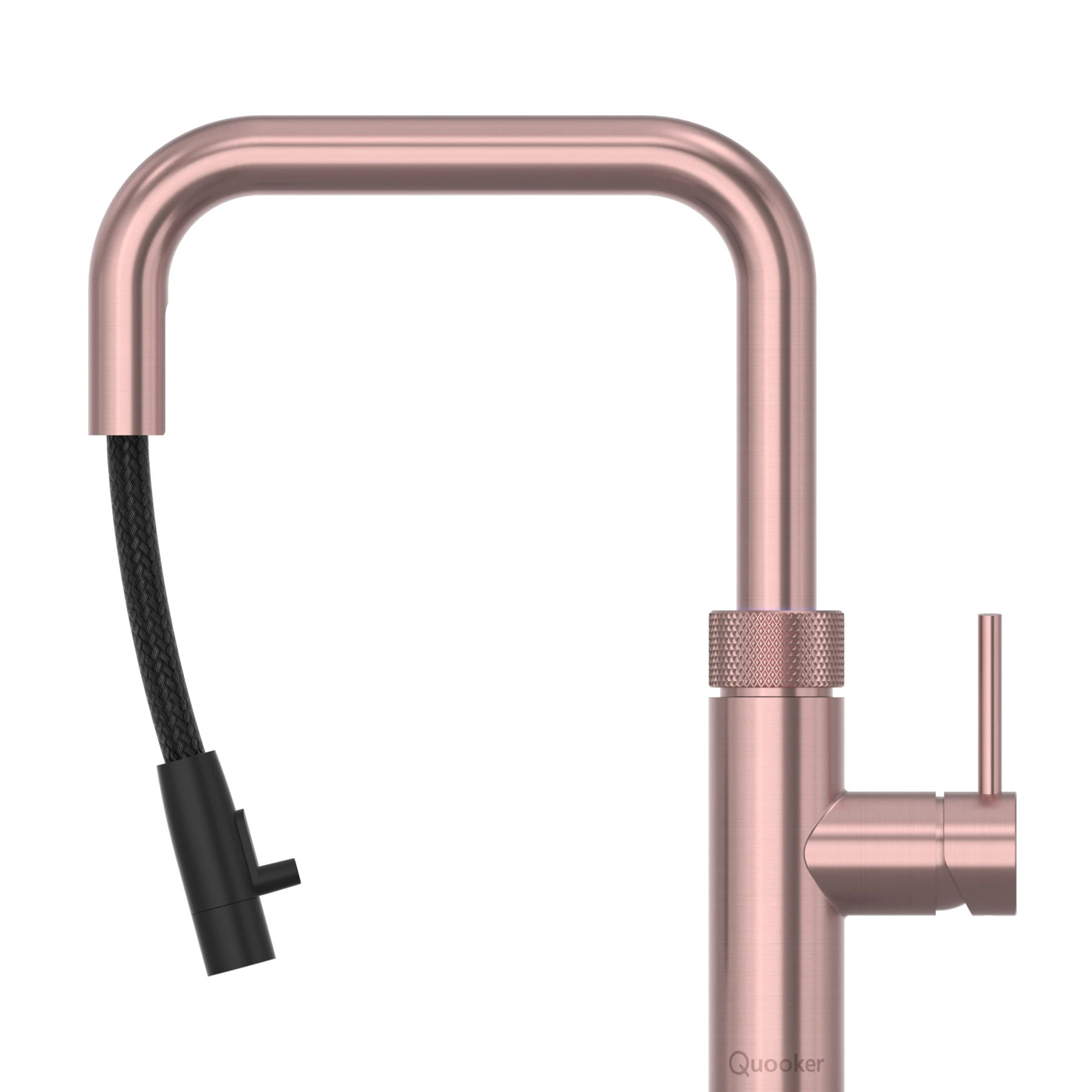 - Quooker bietet: einen kindersicheren Druck-Dreh-Bedienknopf sowie einen doppelwandigen Auslauf, der nicht zu heiß zum Anfassen wird