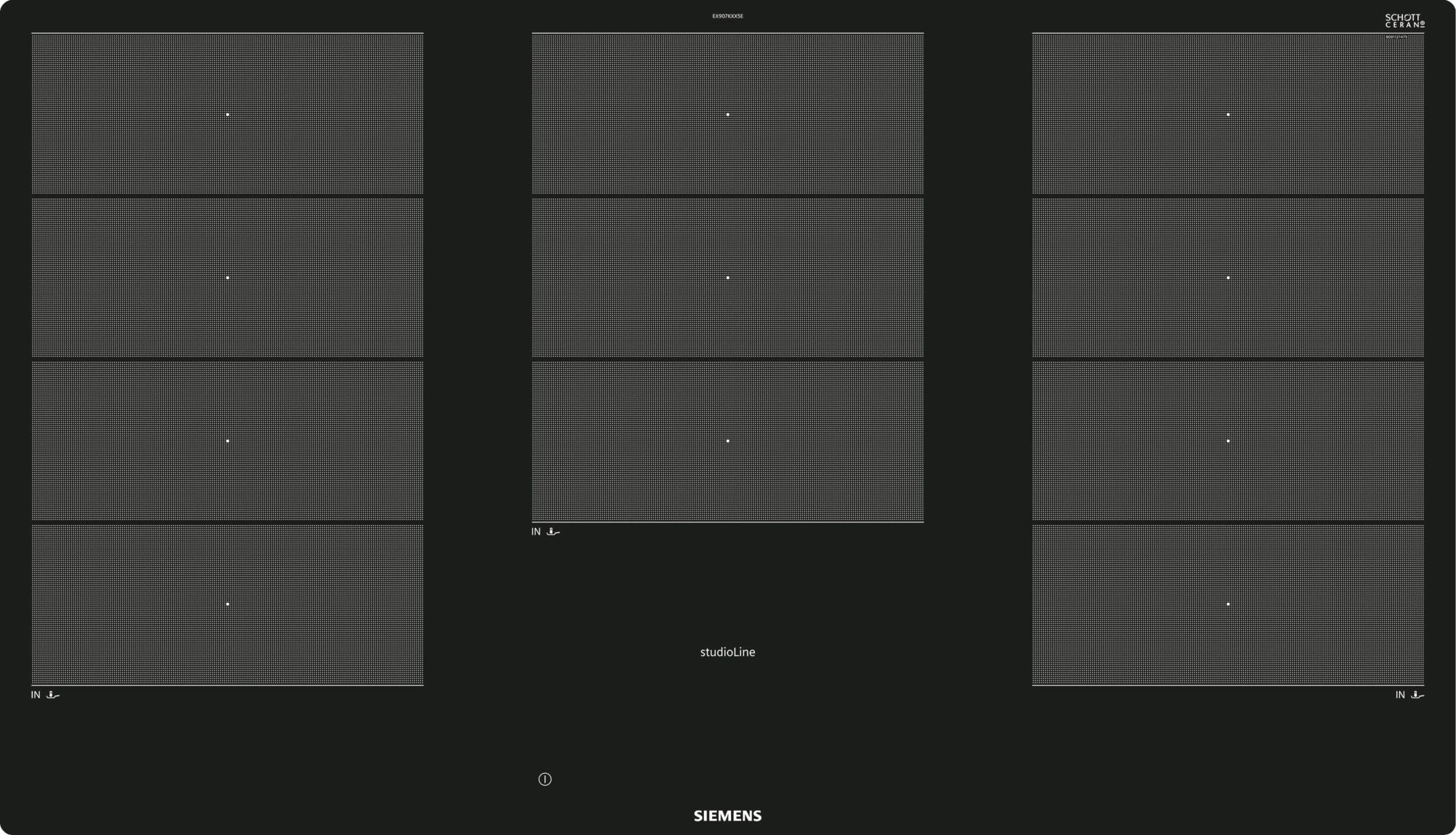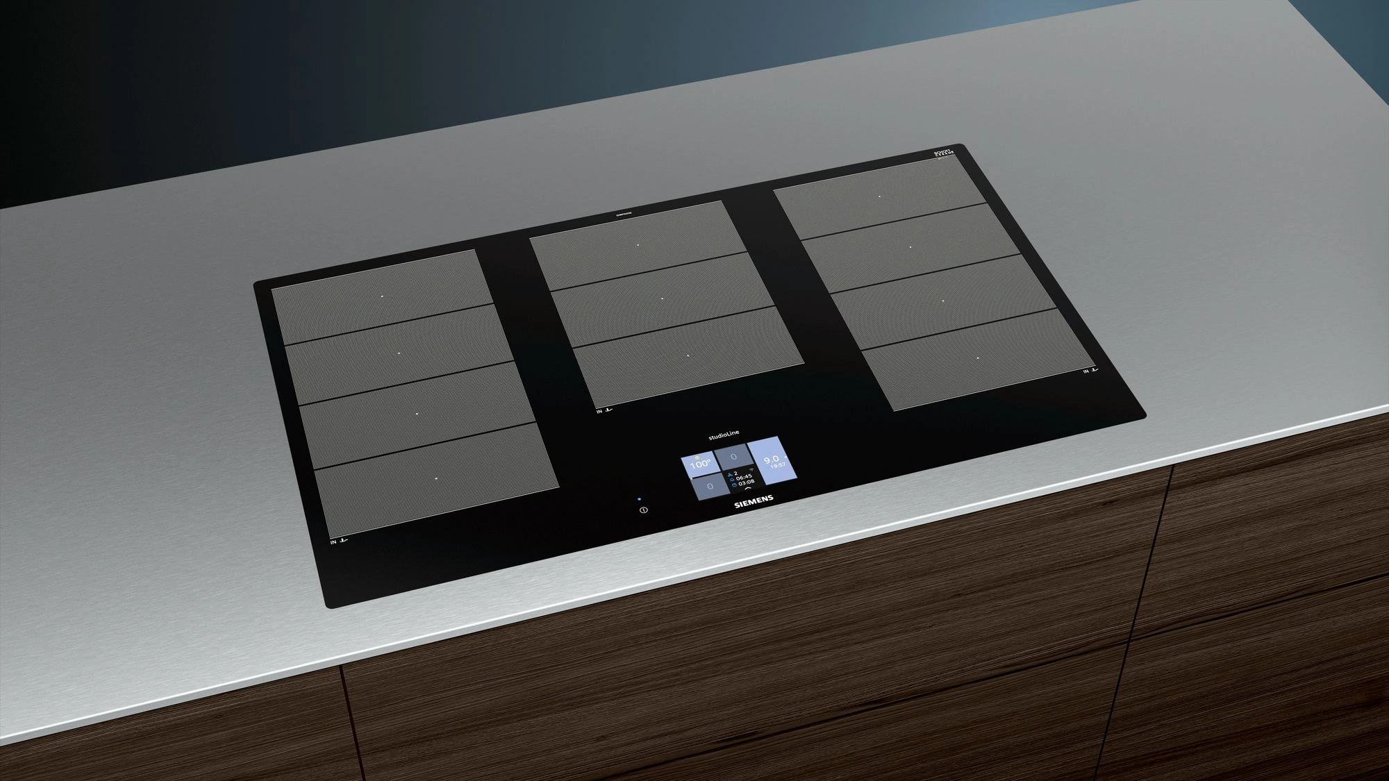 Das Siemens EX907KXX5E iQ700 Induktionskochfeld aus der studioLine besitzt drei Kochflächen mit varioInduktion (Flex-Induktion) auf 90 cm. Es wird flächenbündig in die Arbeitsplatte eingebaut. Die Bedienung erfolgt über ein modernes TFT-Touch Display mit farblicher Text-Symbol-Anzeige.