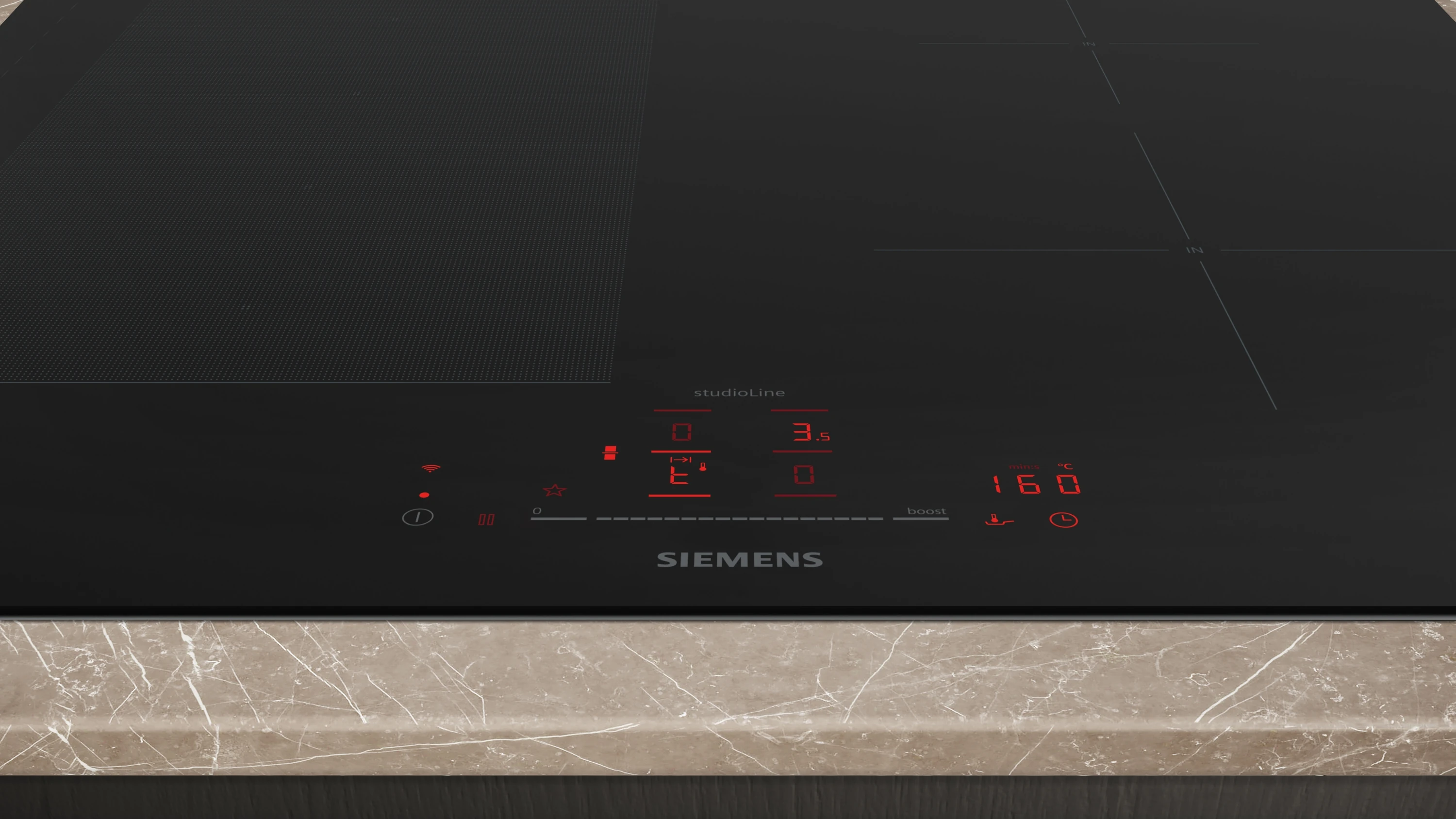 - powerBoost: erhöhe die Power einzelner Induktionszonen um bis zu 50 %.