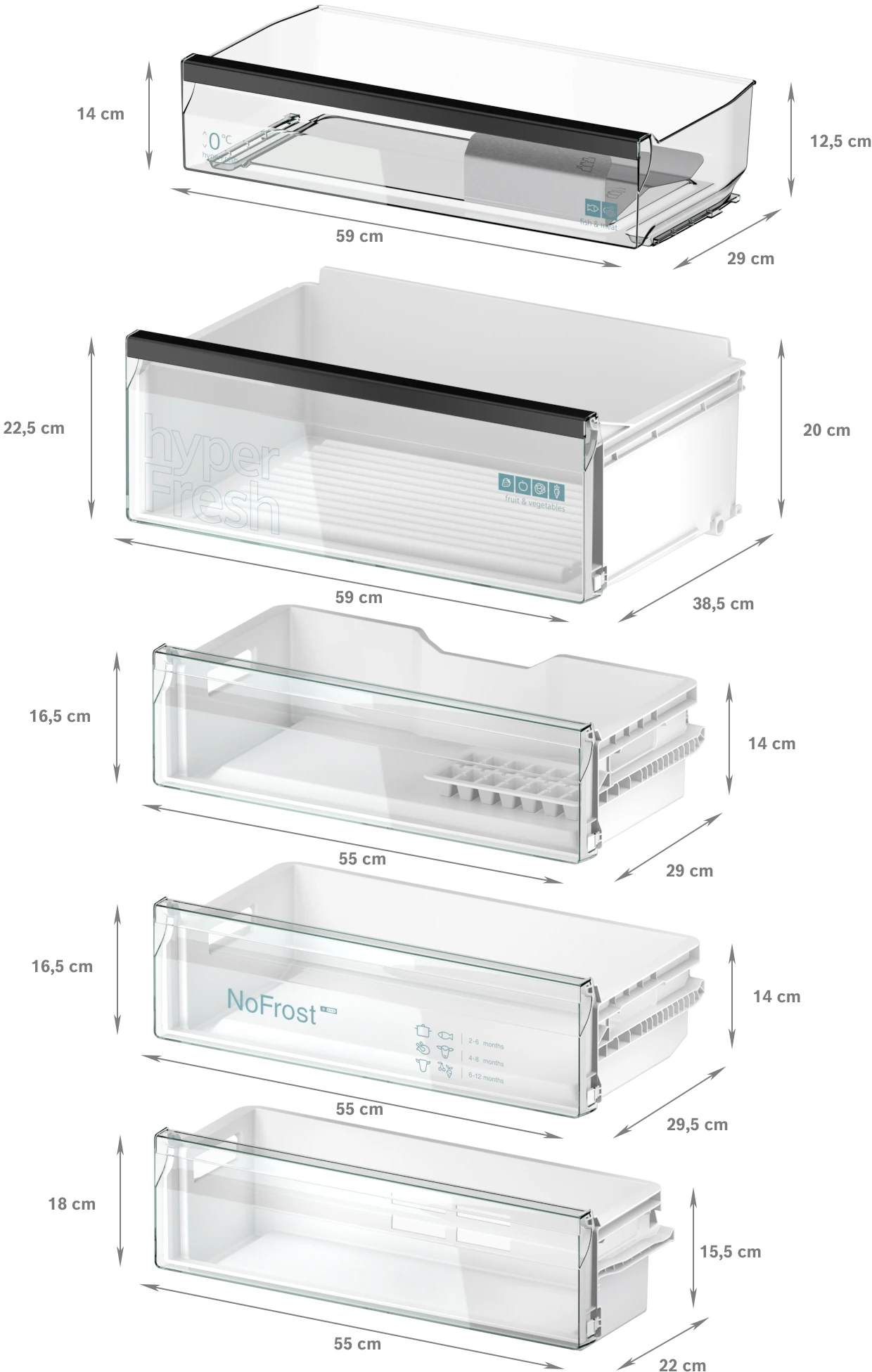 - hyperFresh : mehr Platz für Obst und Gemüse. Und eine besonders kalte Umgebung für Fisch und Fleisch.