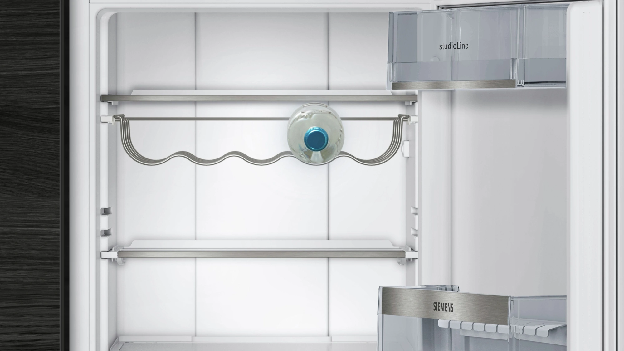 Die Siemens KI86FSDE0 iQ700 Kühl-Gefrierkombination vereint einen Kühlschrank mit Gefrierschrank aus der Premium-Serie studioLine. Auf 223 Liter bietet die Einbau-Kombination viel Raum zum Kühlen und Gefrieren von Lebensmitteln. Zu ihren Features gehören die Abtau-Automatik NoFrost, die Flaschenablage bottleRack für eine rutschsichere Flaschenlagerung und hyperFresh Premium 0° C für die optimale Lagerung von frischen Lebensmitteln.