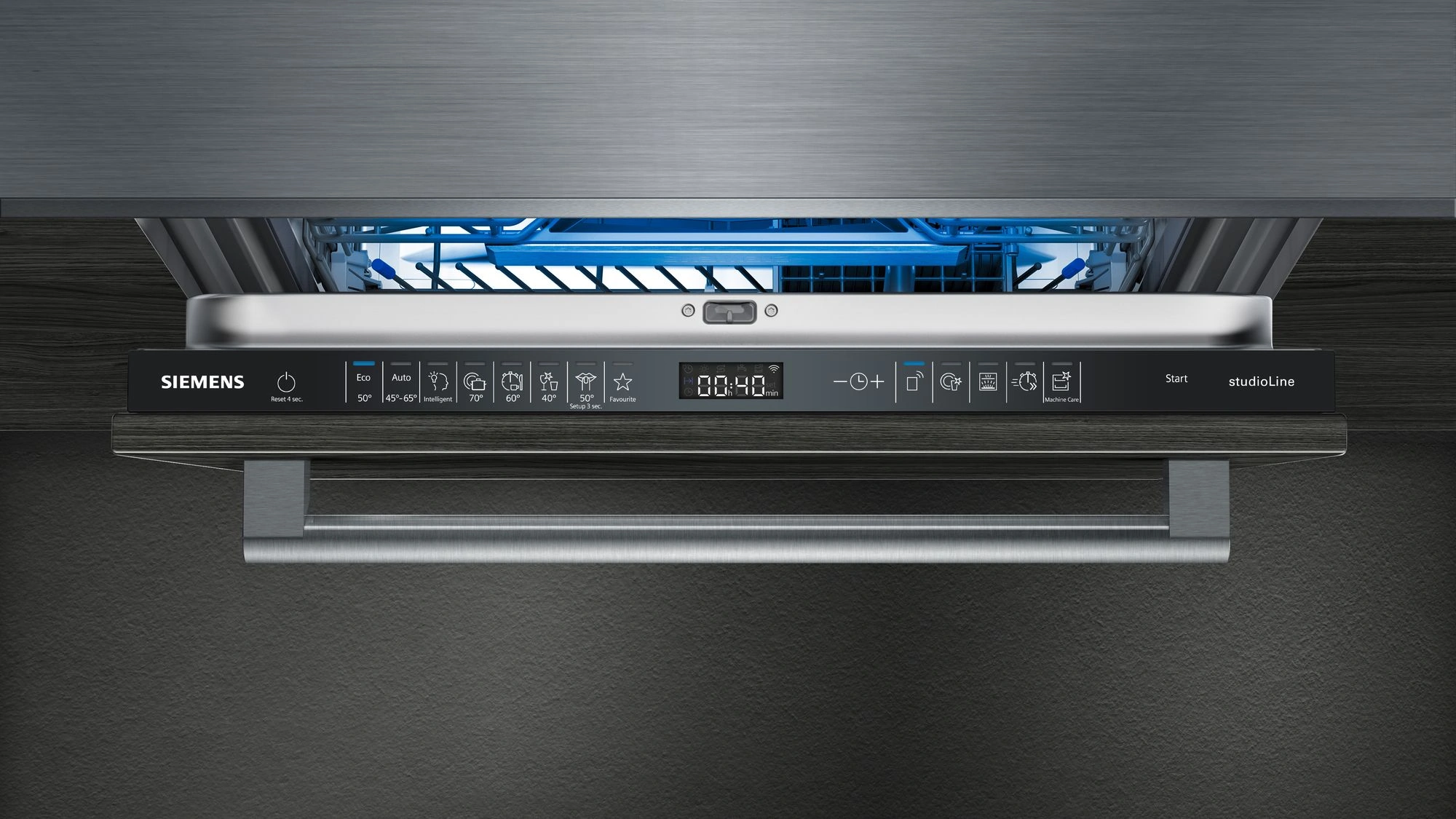 Der Siemens SN65Z801BE iQ500 Geschirrspüler ist vollintegriert und 60 cm breit. Mit seiner Höhe von 81 cm bietet er viel Platz für schmutziges Geschirr. Seine Highlights sind vor allem das blaue Ambientelicht und die schnelle Reinigung mit varioSpeed Plus. Die integrierte Siemens Spülmaschine verschwindet unauffällig hinter der Küchenfront und projiziert die Restzeit mithilfe von timeLight auf den Boden.