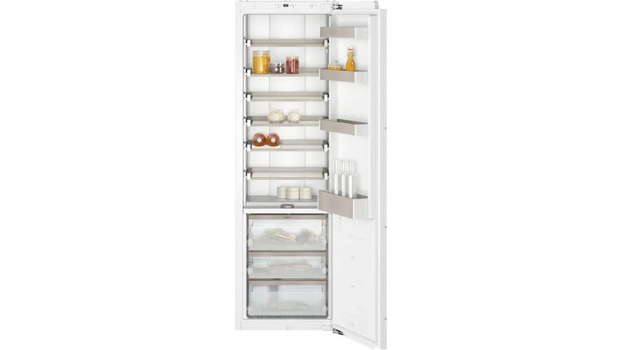 Der Gaggenau RC289370 Vario Einbau-Kühlschrank bietet auf 56 x 177,5 cm genügend Raum zum Kühlen von Lebensmitteln. Zu seinen Highlights zählen die Push-to-open Funktion, mit der sich die grifflose Möbelfront durch leichtes Antippen oder per Sprachbefehl öffnet. Aber auch die 3 Klimazonen inklusive Frischeschubladen nahe 0° Celsius oder die Abtau-Automatik mit Tauwasserverdunstung.